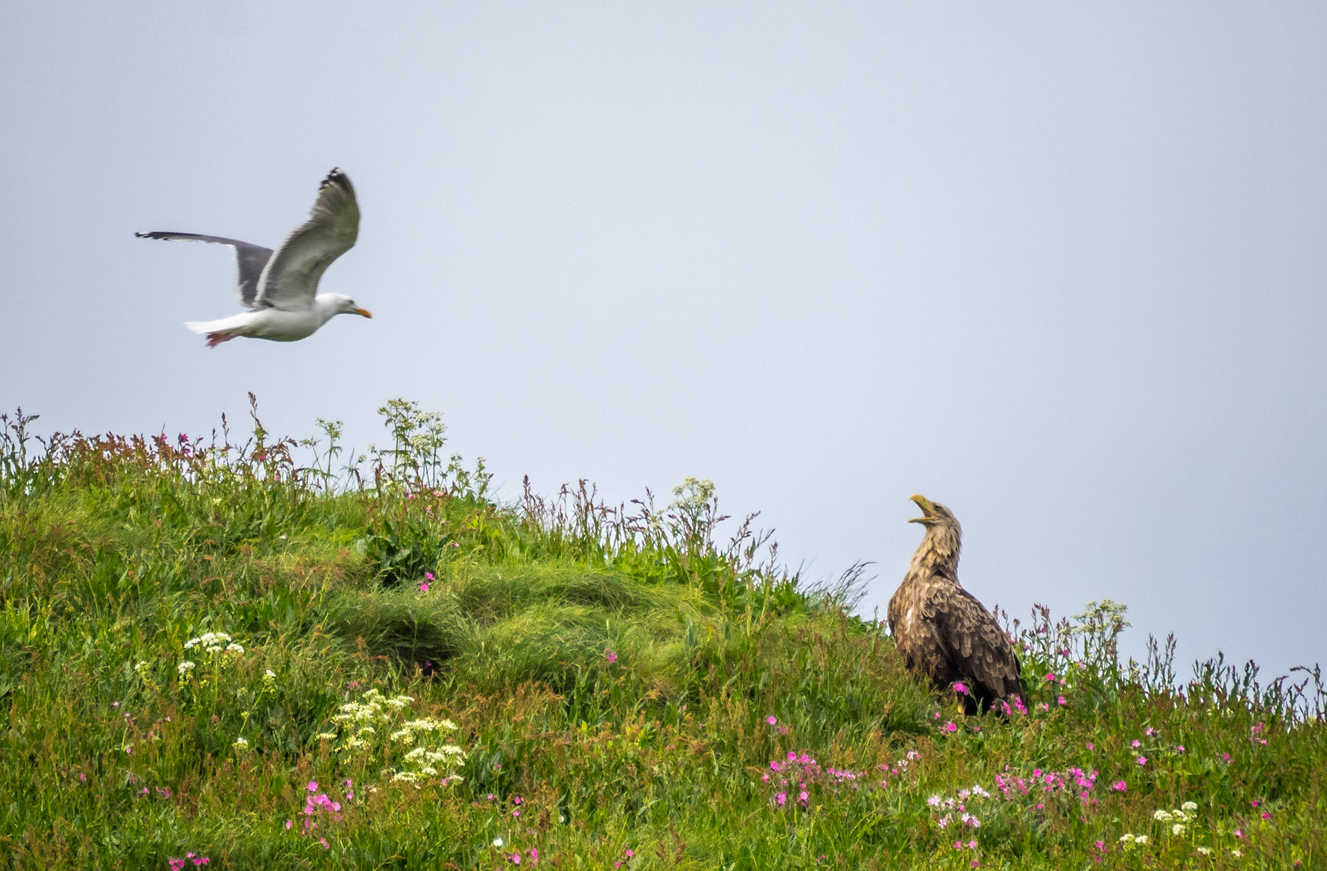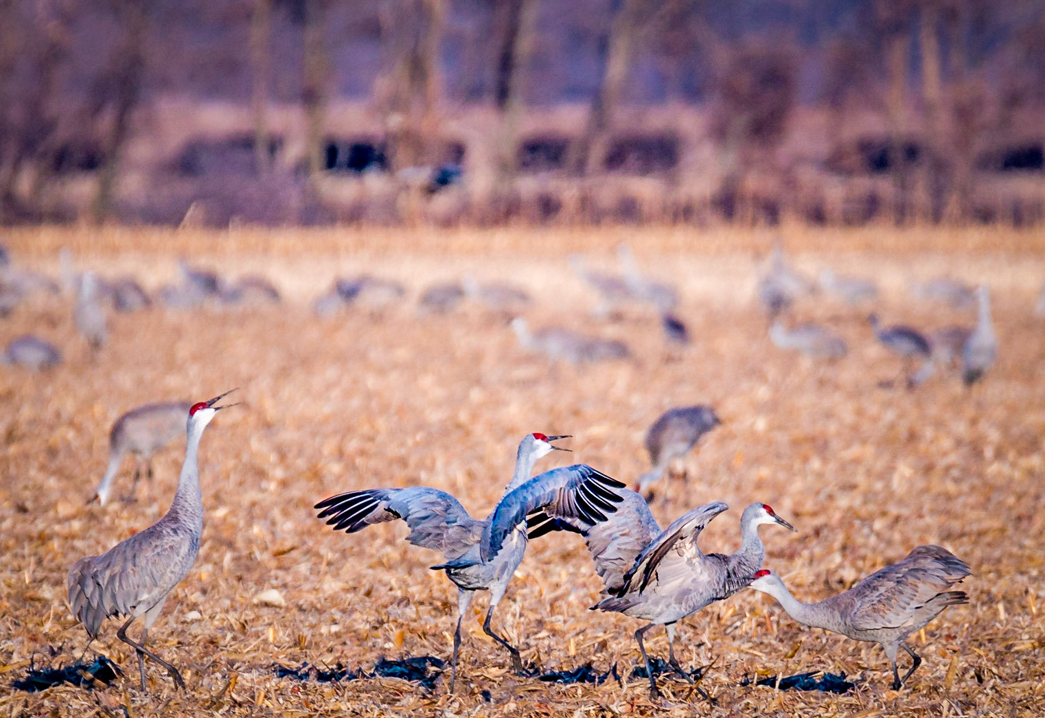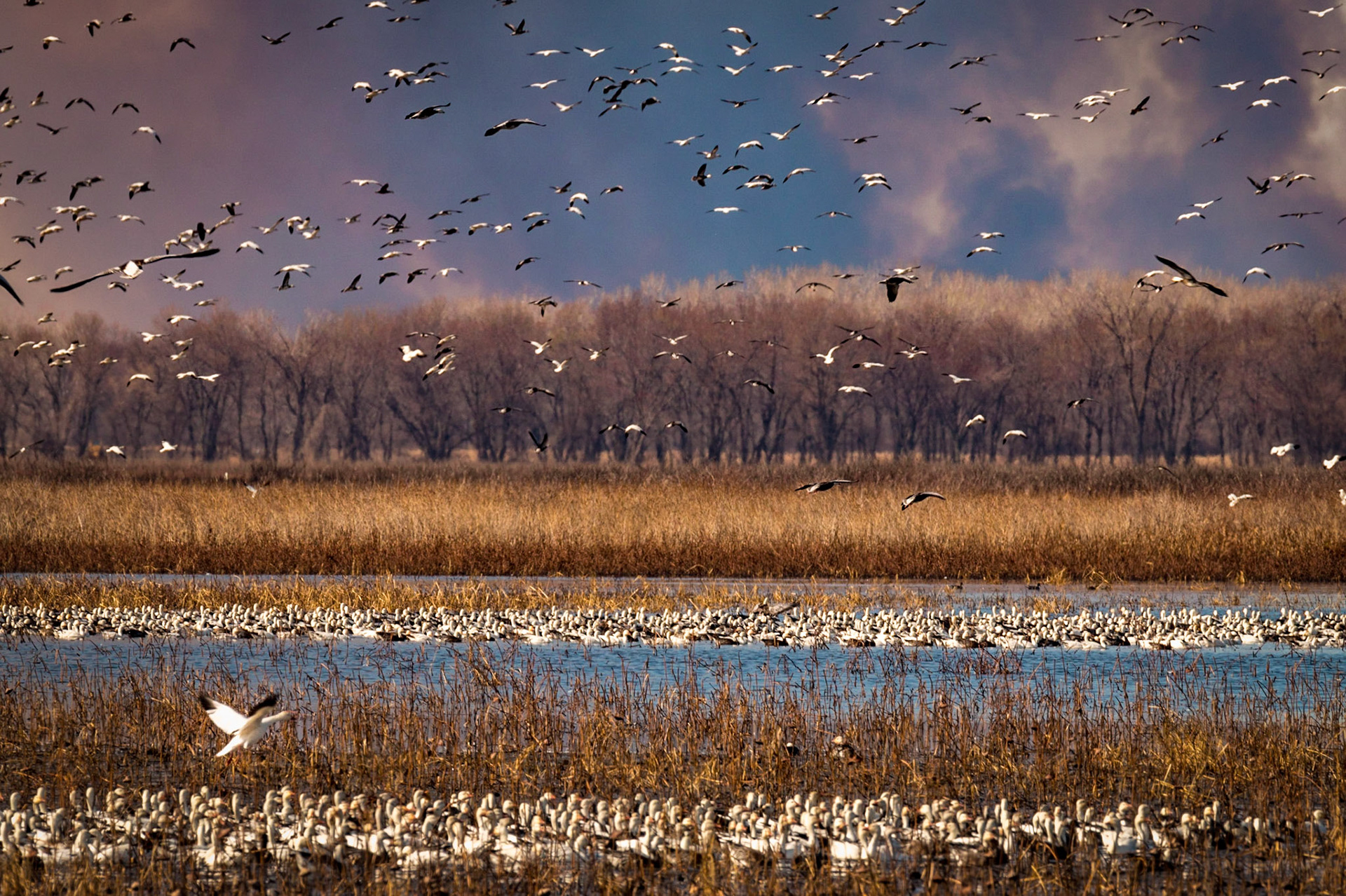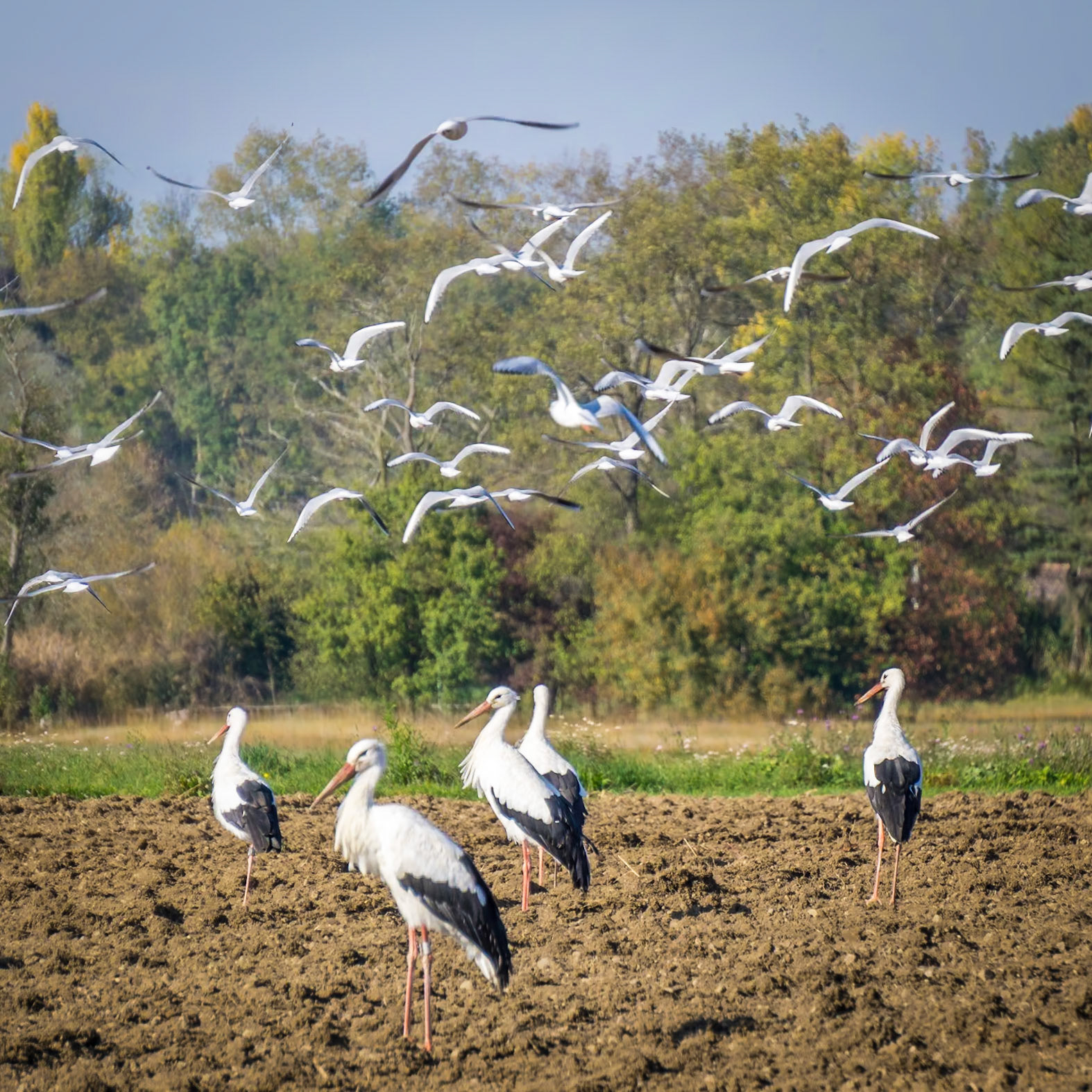 Migrating ravens searching for a place to rest