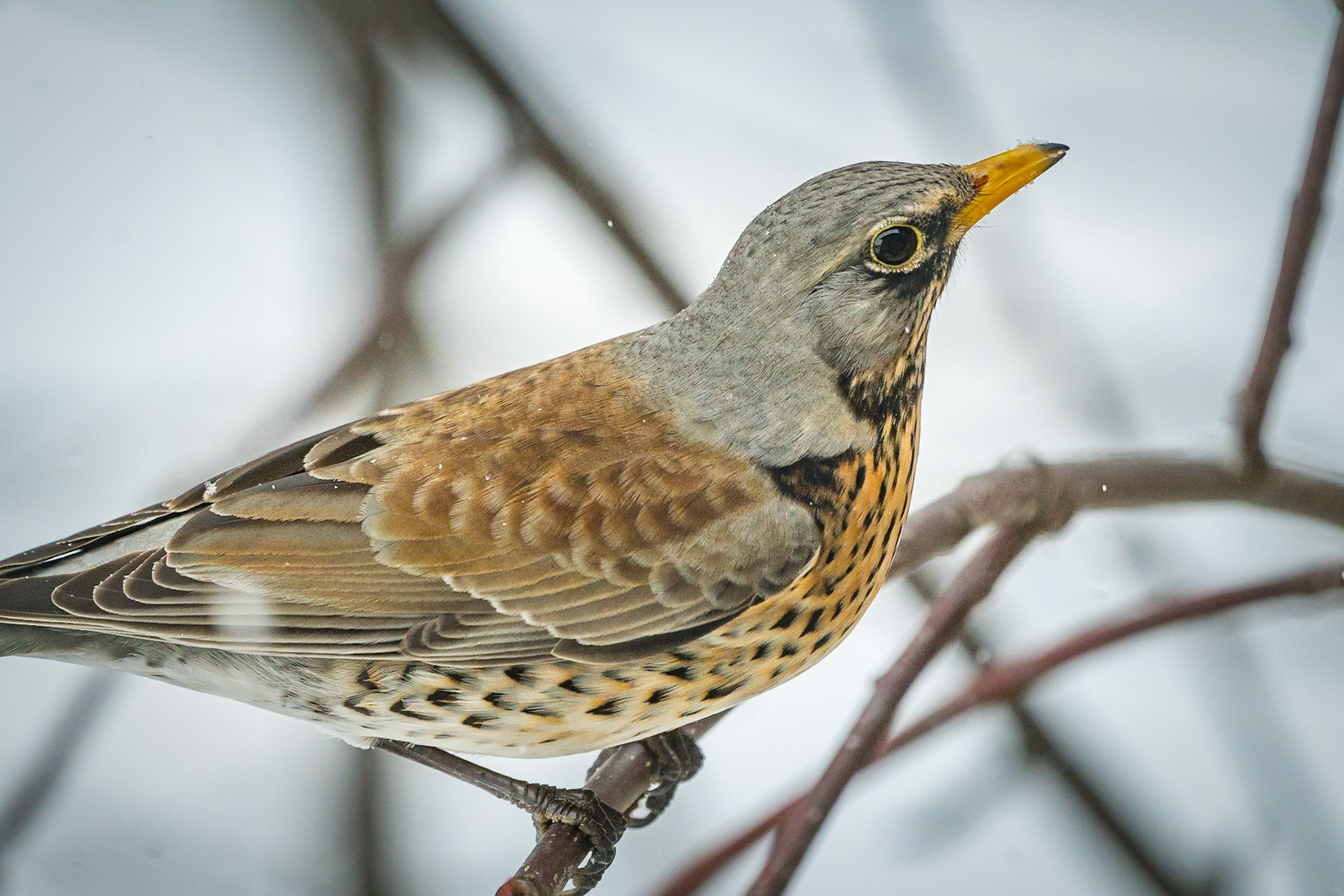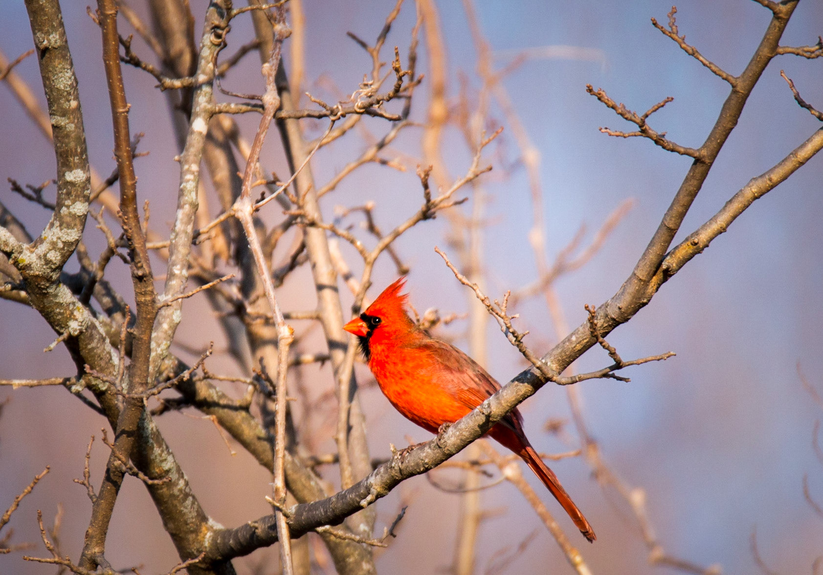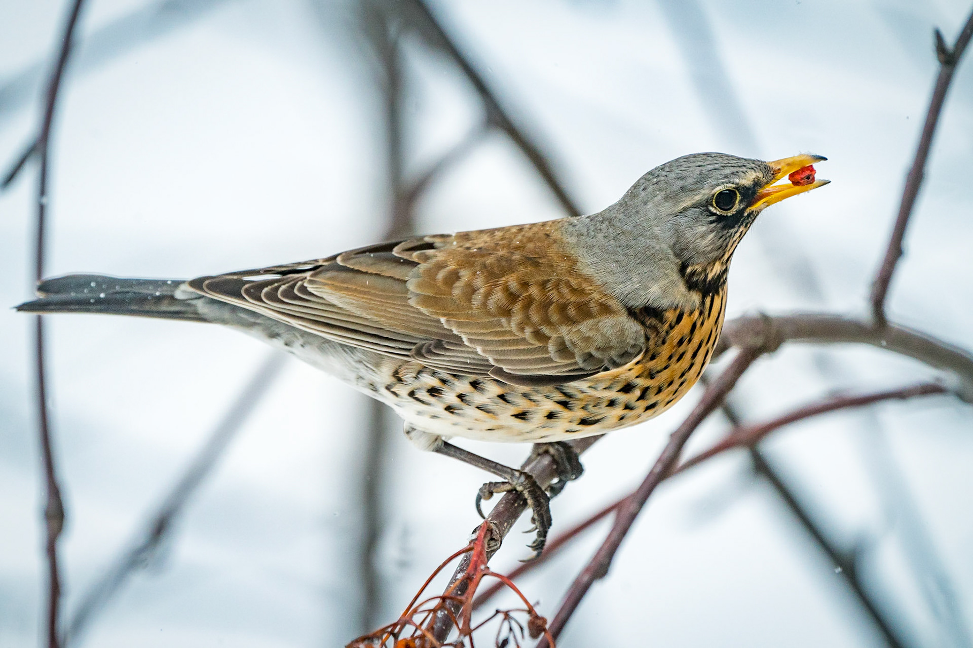 Red-headed Woodpecker on tree in winter time