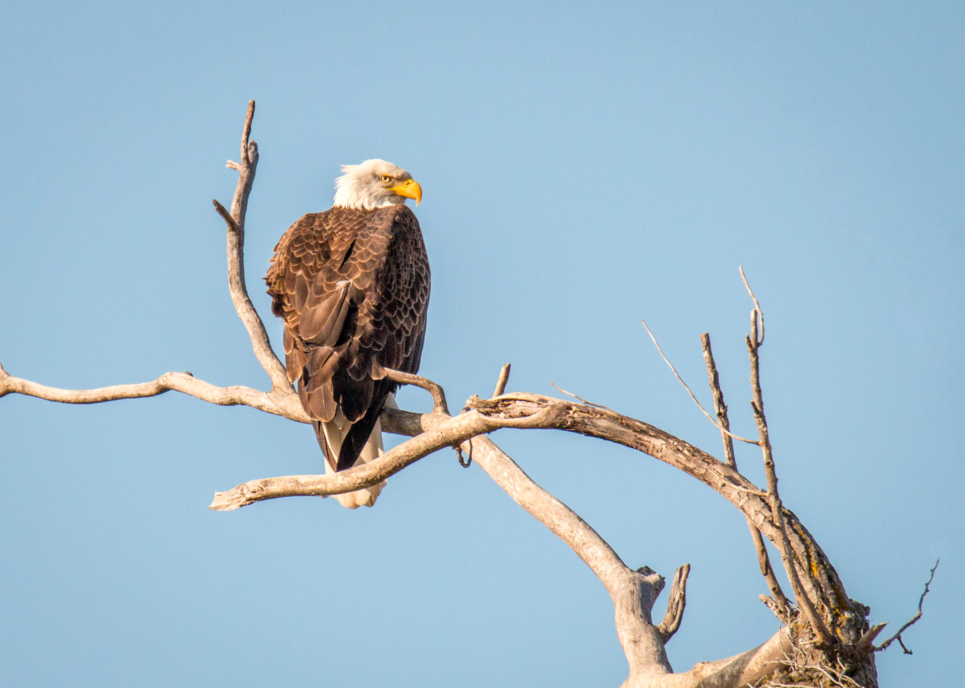 Bold Eagle wiht moon in background, sittin in his nest